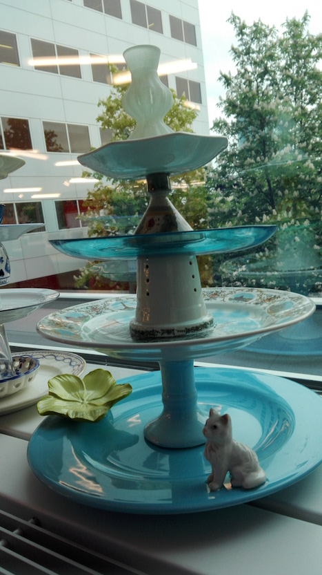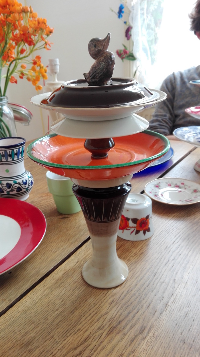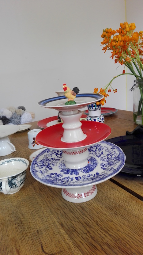 | Een paar foto's van eindresultaten van de workshop etagères maken. Wil jij ook zelf een etagere maken van prachtig servies? Lees hier meer. |