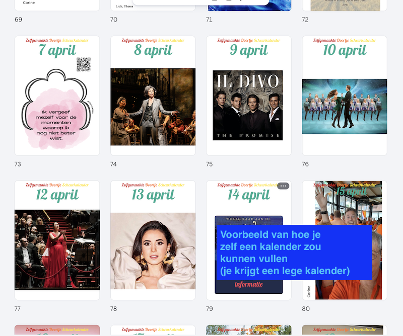 Canva is een online ontwerpprogramma waarmee je zelf makkelijk dingen kunt maken zoals posters, kaarten, social media-beelden of… een scheurkalender. Je sleept met tekst, afbeeldingen en kleuren tot het precies wordt zoals jij het wilt.